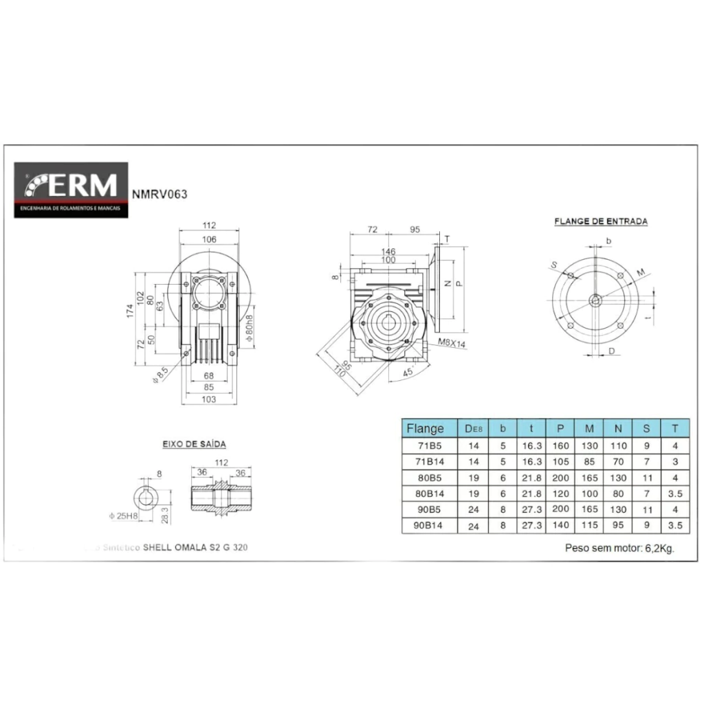 - Tipo: Redutor de Velocidade coroa e rosca sem fim