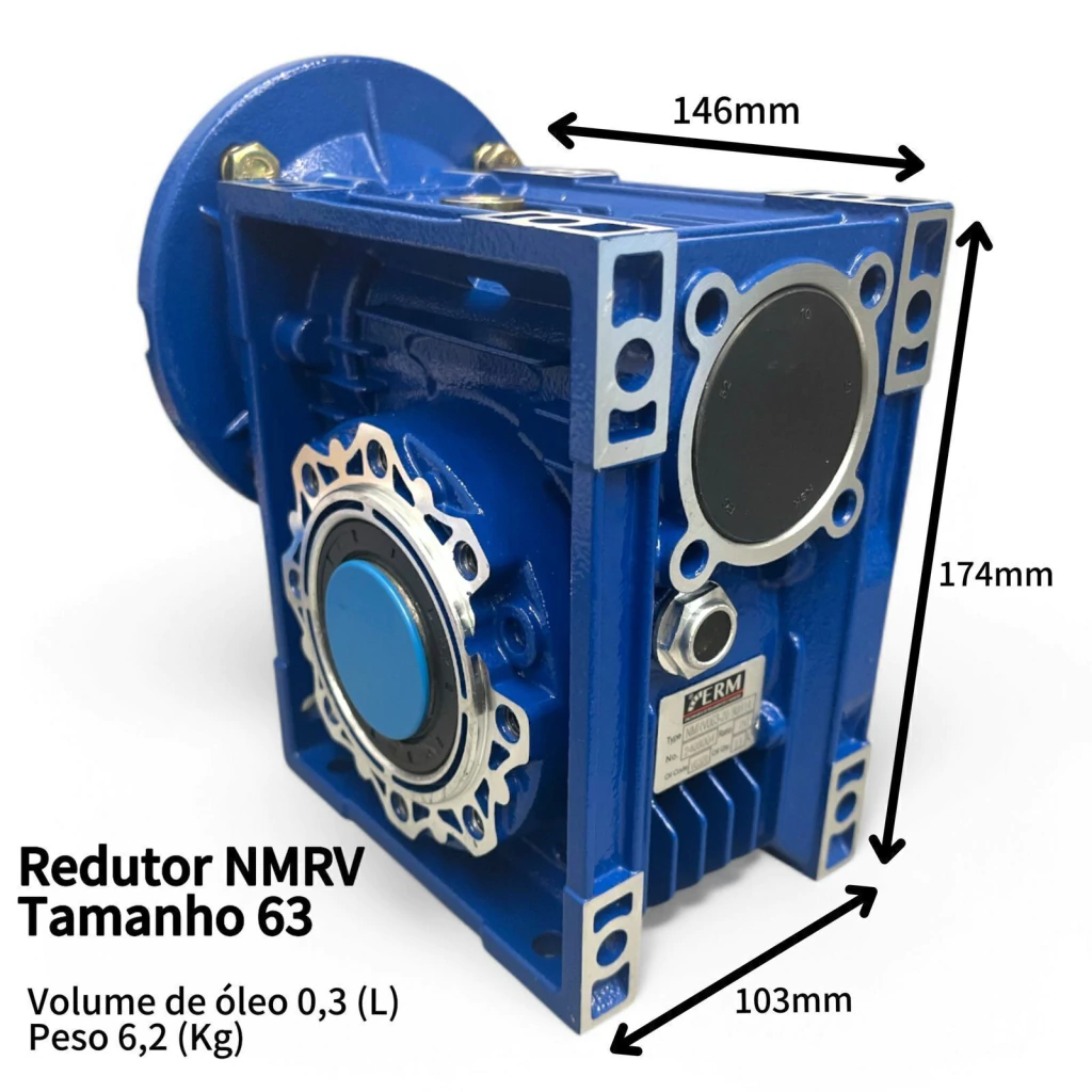 - Tipo: Redutor de Velocidade coroa e rosca sem fim